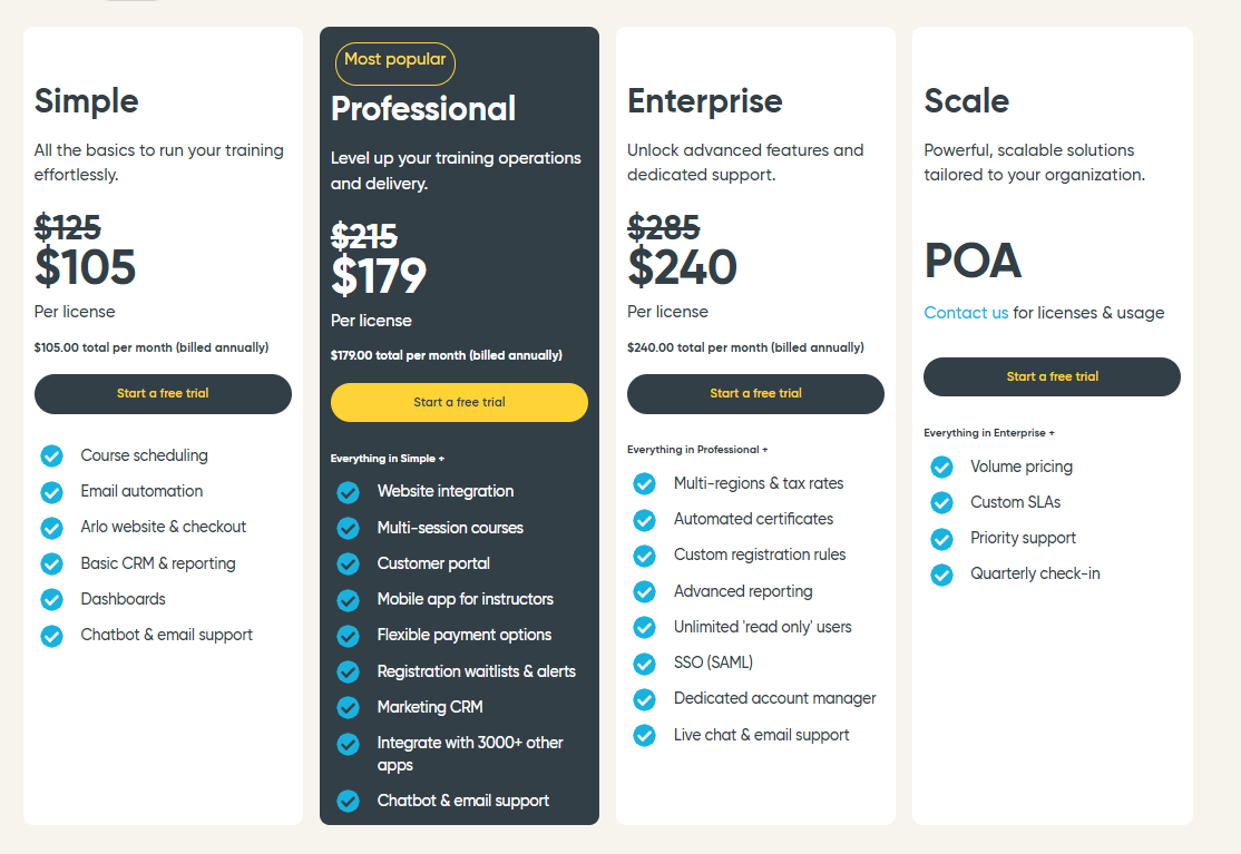 When you’re running recurrent programmes, multi-day courses, multi-instructor delivery, blended learning formats, and need flexible payment options, you need a complete training management platform like Arlo.