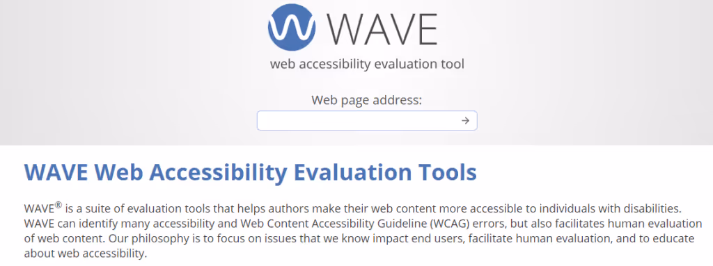 WAVE (Web Accessibility Evaluation Tool) is a suite of evaluation tools that helps site owners make their web content more accessible. It’s very simple to get started: all you need to do is paste your website URL into the ‘Web page address’ field, press the arrow, and WAVE will highlight areas of your site that don’t meet WCAG standards.