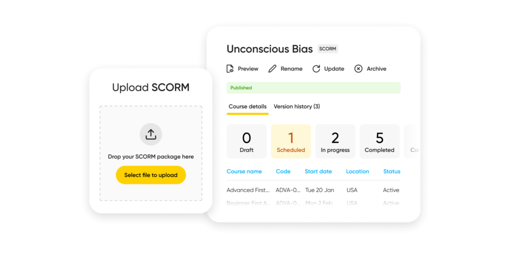 Now you can upload, manage, and deliver all of your SCORM content, with fast importing, flexible version control and reporting, all within Arlo. It’s powerfully simple and purpose-built for the way you train.