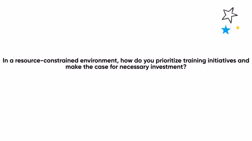 The question helps determine how candidates prioritize the most impactful training programs when there isn't enough to go around. It also helps show they justify the need for investment to decision makers.