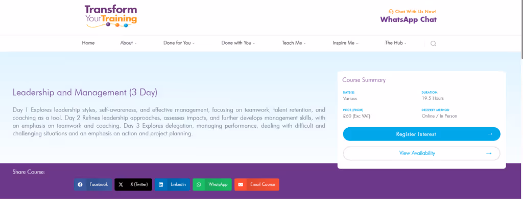 Alongside the live sessions delegates have their own elearning modules to work through, and the elearning modules directly feed into what they’re going to learn in the live sessions. The facilitator has access to a portal where they can see how each delegate is progressing through the self-paced modules.