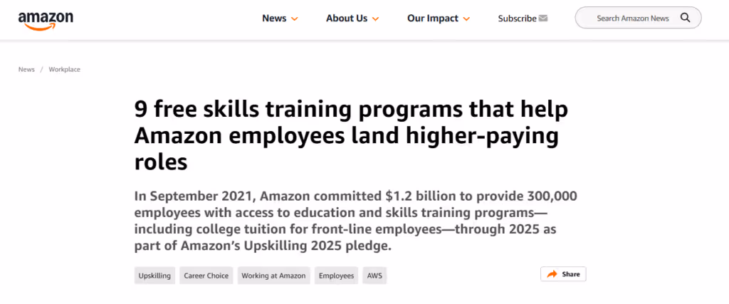 Amazon's Upskilling 2025 Initiative is a $1.2 billion investment designed to help employees gain crucial skills for higher-paying, in-demand roles, whether technical or non-technical. The initiative is tailored to help workers to adapt to evolving industry standards and ensure their long-term career growth.